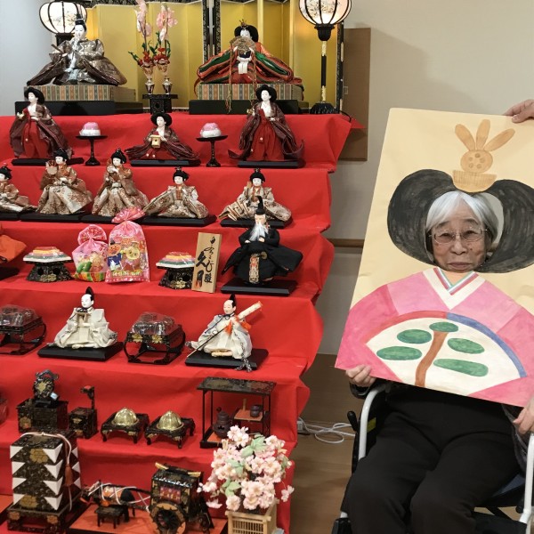 3月3日はひなまつりでしたね!ホームでは、去年と同様エレベーターホールにひな壇を2つ飾りました!写真の1枚目と2枚目からのひな壇が異なります。