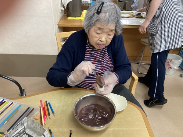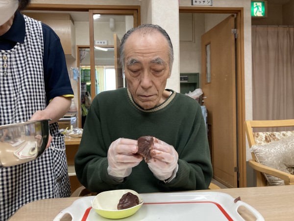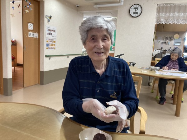 ご自分の分のおはぎを作り、ちょっとあんこをなめて「美味しい」と。
