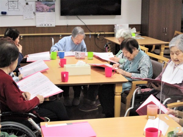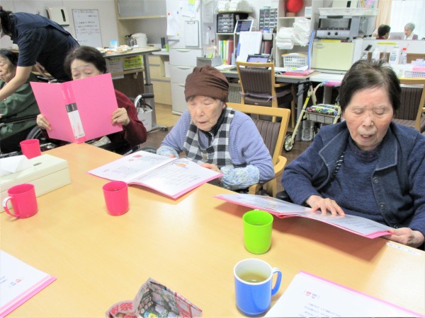そこで職員さんからの提案があり、皆さんで春の歌を唄うことになりました。