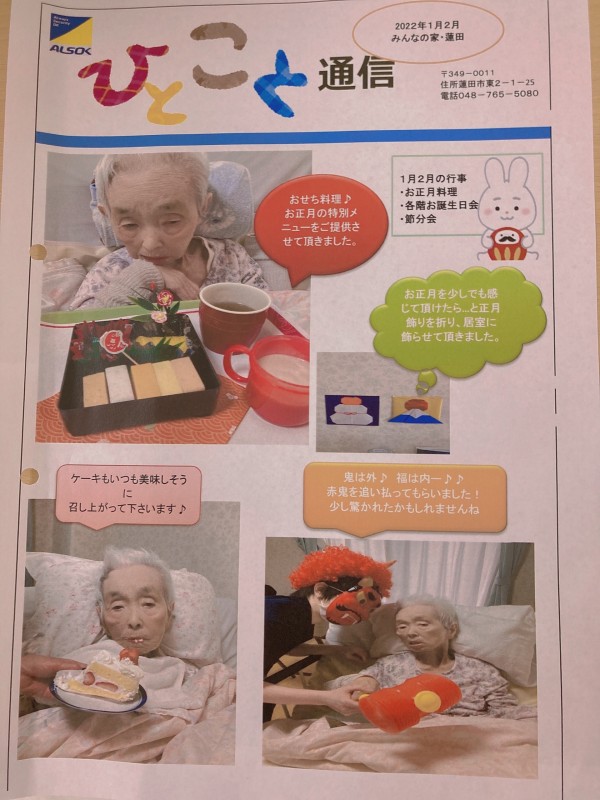 グループホームみんなの家・蓮田です。