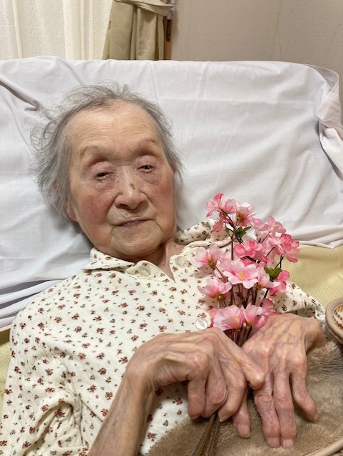 居室ですごれている方も、職員と皆様手作り桜の貼り絵をバックにしてお花見を楽しんで頂きました(^^♪