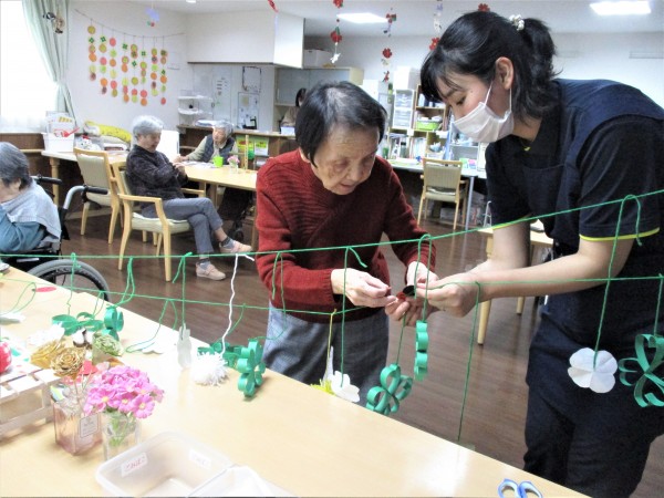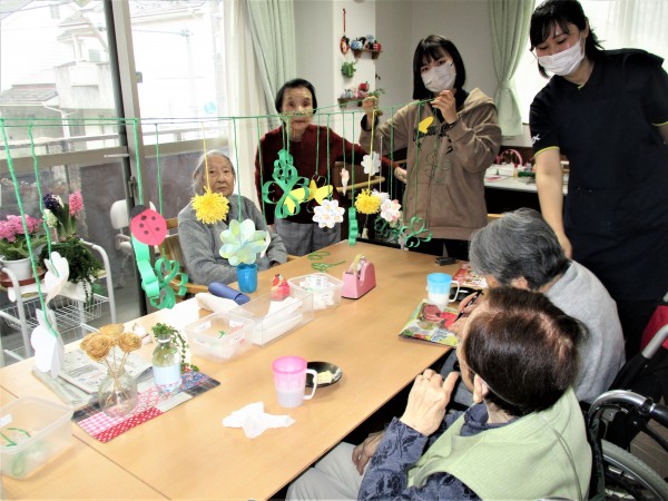 みんなの家・与野公園 3月度の吊るし飾りに挑戦しました。