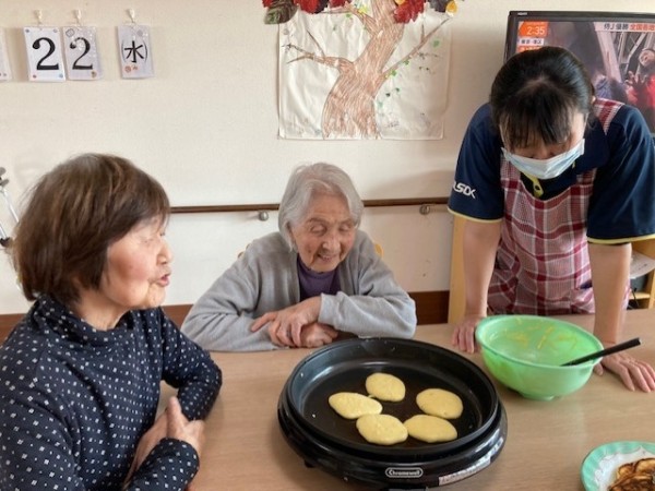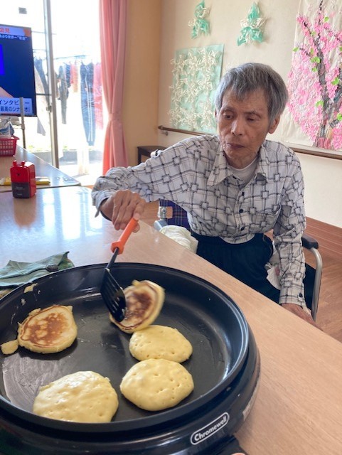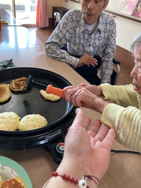 皆さんと一緒に、卵を割ったり粉を混ぜたりホットプレートで焼いたり!