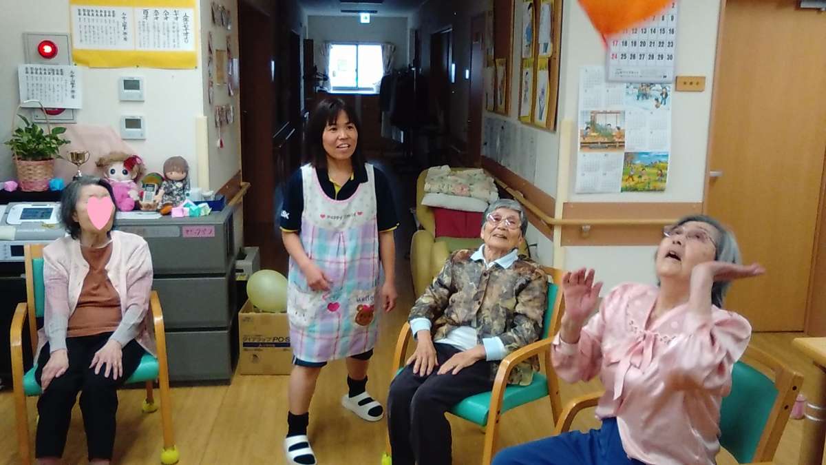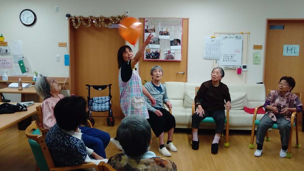 風船を落とした職員はうさぎ跳び10回の罰ゲームもあり大!大爆笑!