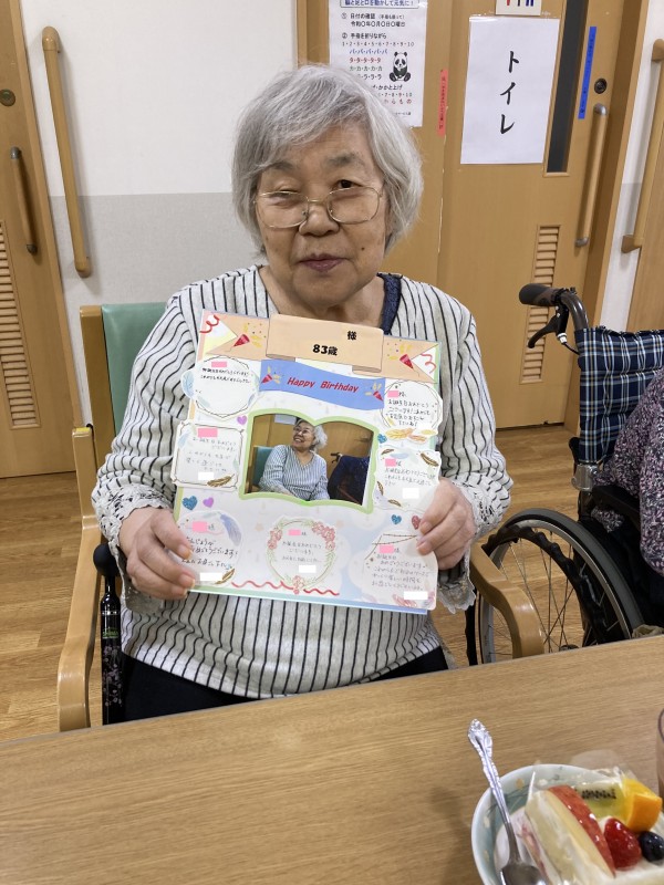 川崎久地2では、ご入居様のお誕生日をスタッフのコメント付きが入った色紙などをプレゼントし、