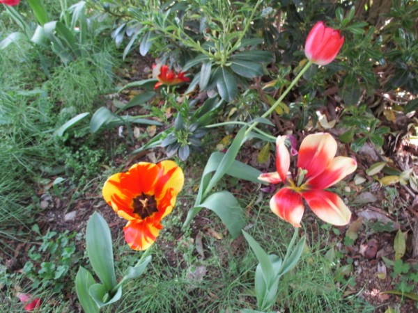 チュウリップ☆タンポポ☆アジサイ(花はまだです)などの草花が元気に咲きほっこています。