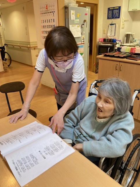 あるご利用者様から「歌を唄いたいなぁ」とのリクエストがあり、歌が好きな皆様にお集まり頂きました\( ̄︶ ̄*\)) 歌集をご覧になりながら、職員と一緒に楽しそうに歌われています。