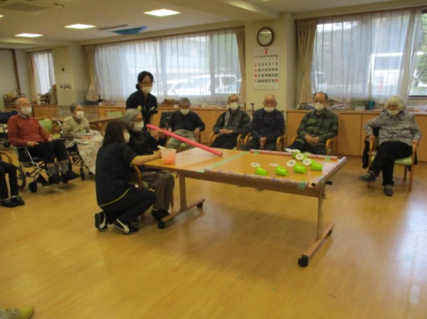 新しく企画した運動レク『ホールインワン』ですが、皆様かなり慣れてこられまして高得点が連発でした!みんながんばれ(^O^)/
