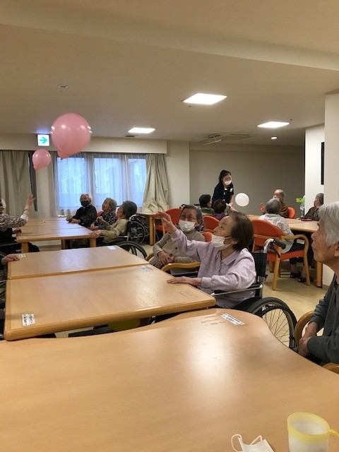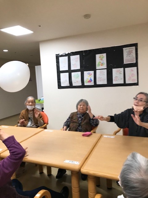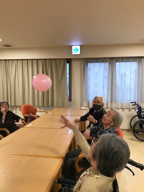 本日のレクリエーションは風船バレーです!