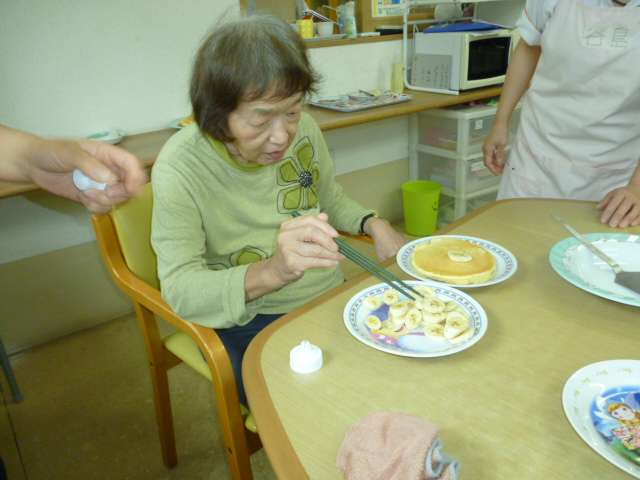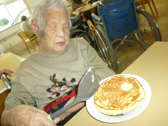 パンケーキ、ホットケーキは手軽にできてこういったレクでは本当に優等生ですね。