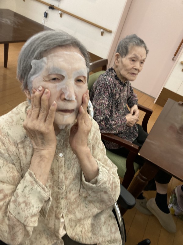 美容レクの内容は、希望者に①手浴・マッサージ→ネイルと②温タオルで顔を温め血行を促進→美容パックを行いました( *´艸`)♡