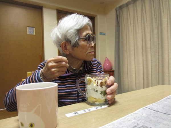 全体レクでフルーツパフェを皆様とご一緒に作りました。