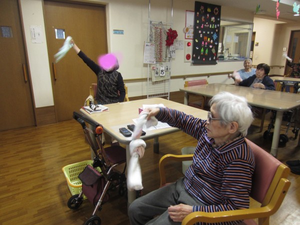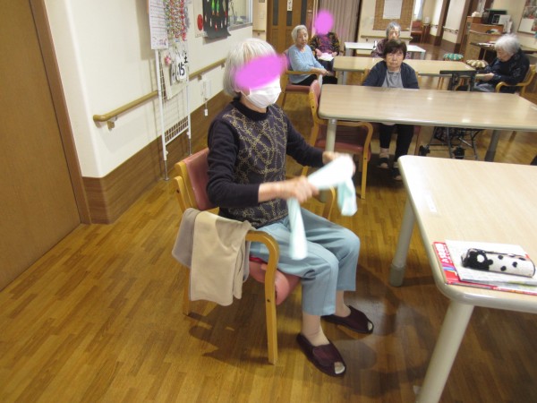タオルを使った体操も行いました。体全体を動かした体操も行ったり、足や腕を動かす体操も行いました。