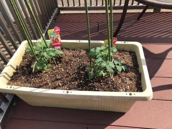 営繕のAさんがトマトの苗を4つ植えてくださいました!!