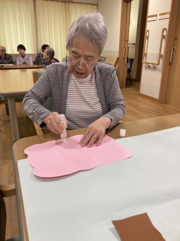 小さな桜をどこに貼ろうかしら?色はどうしようかなど考えながら貼り付けをしています。