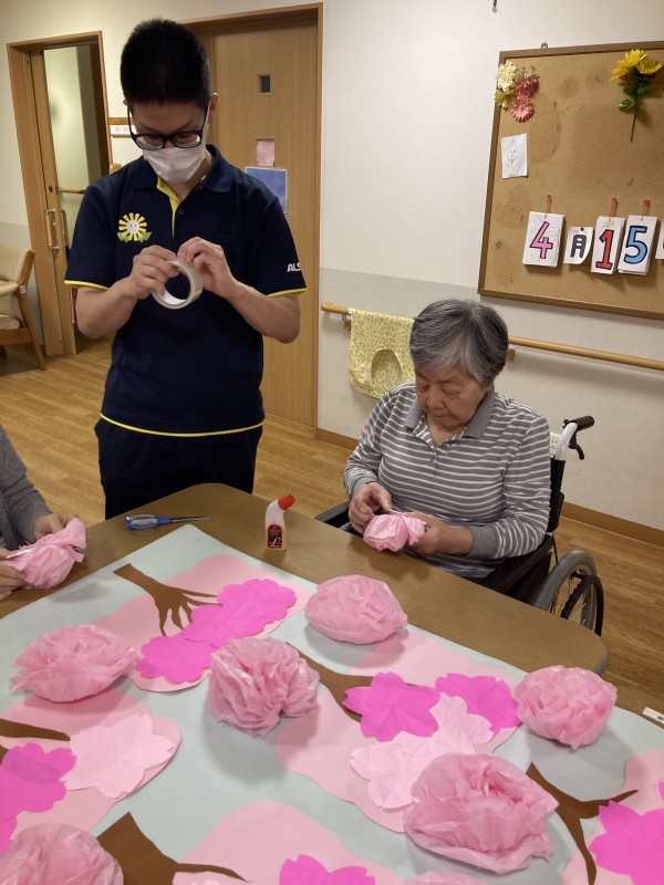 外の桜は散りましたが、ホームでは桜を咲かせました!!