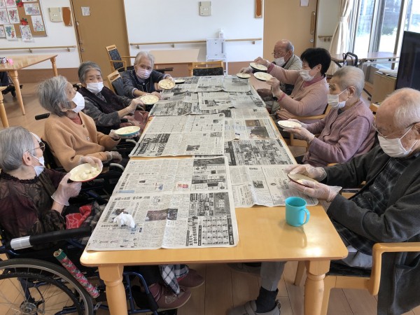 今回はおやつレクで白玉クリームあんみつを皆様で作ってみましたよ(^O^)/