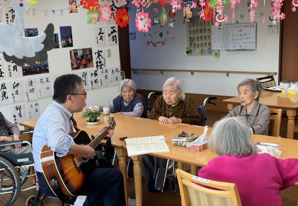 「みんなの家・川崎中野島」本日は2階の皆様と「ギター歌会」を楽しみました♬