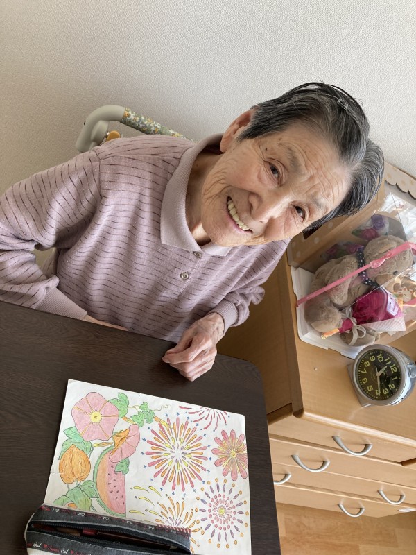 塗り絵を楽しまれている所を撮影させていただきました(∩´∀`)∩