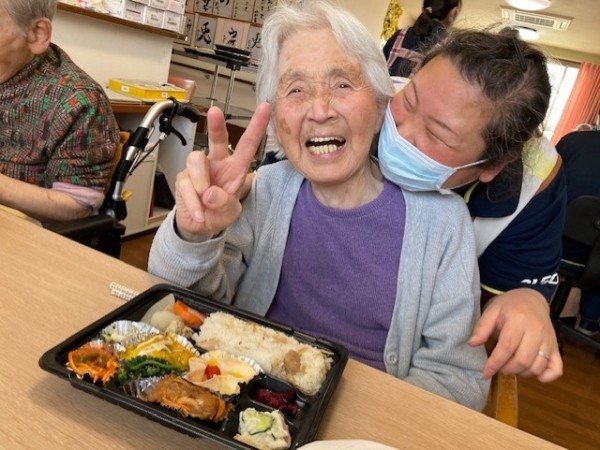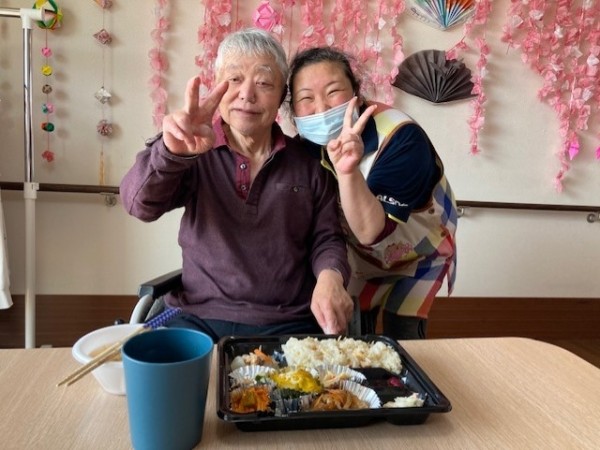 桜の木の下でお花見をしながらとはいきませんでしたが、ホーム内でお花見弁当を召し上がりました!