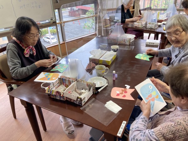 この日も、見本のこいのぼりや隣近所の作品をチラ見しながら、マイこいのぼりが出来上がりました。