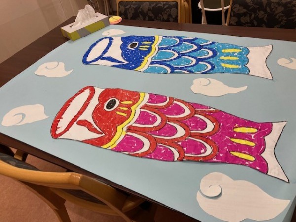 1階の入居者様でこいのぼりの貼り絵を作成しました!