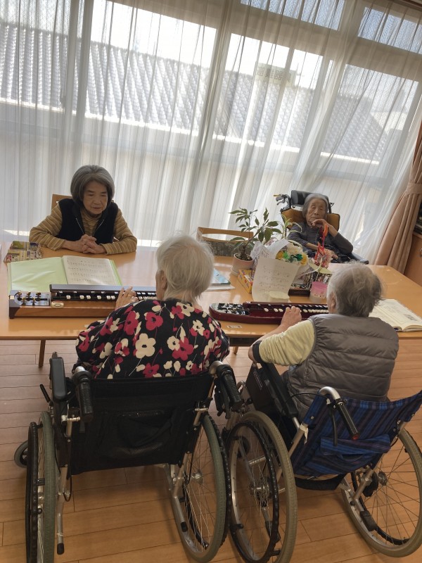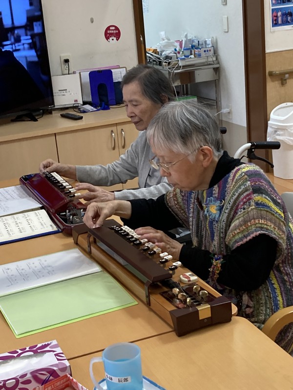 横で聞いているご入居者様も音色に口ずさんでいる方もいらっしゃってフロアが和んでいます!!
