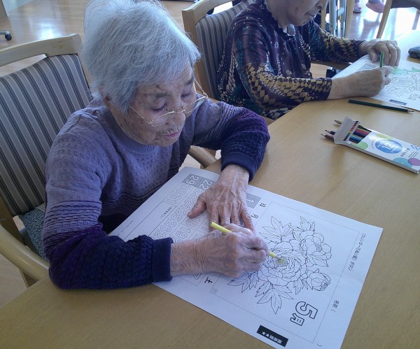 今日は午後からみんなで塗り絵をして頂きました。