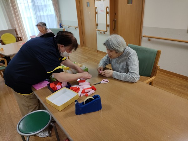 カーネーション作りのレクリエーションを行いましたので、その様子をお伝えしたいと思います!