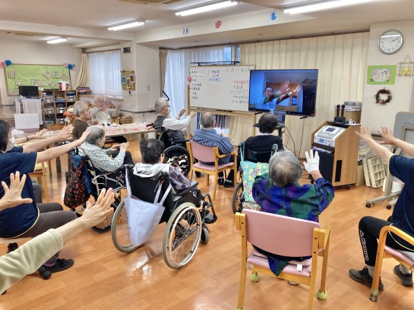 テレビ画面の先生の動きに合わせて、40分位しっかり体を動かされていました。