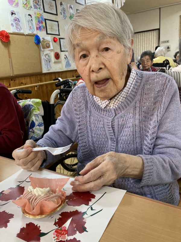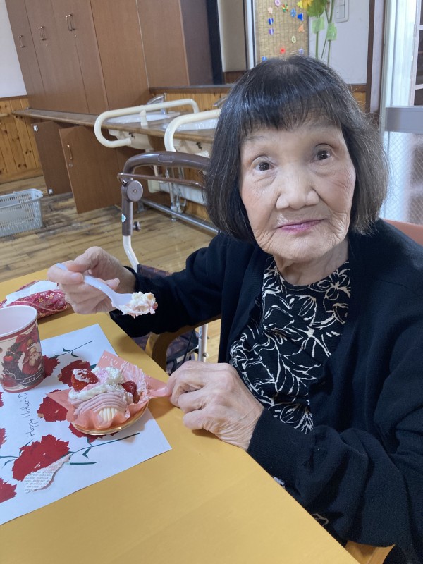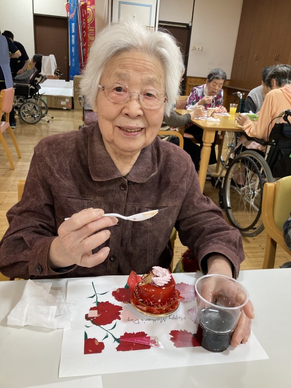 『母の日』ということで、美味しいケーキをお出しし、召し上がっていただきました。