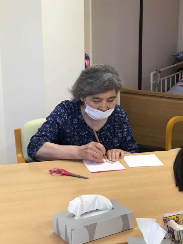 折り紙に、あじさいの花の型を使って書いて頂きました。