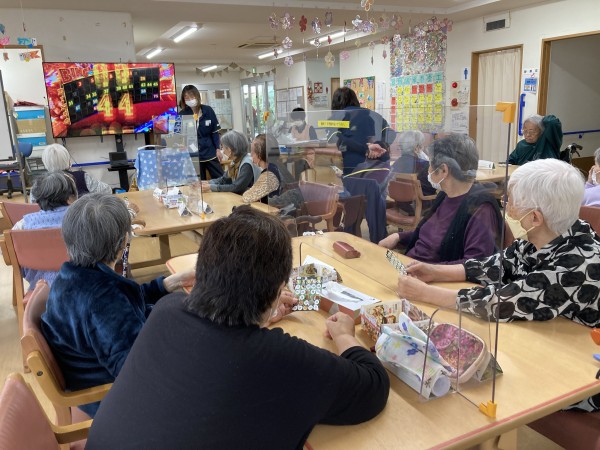今月のイベントは、しょうぶ湯、とくし丸(移動スーパー)、母の日にはビンゴ大会を行い、