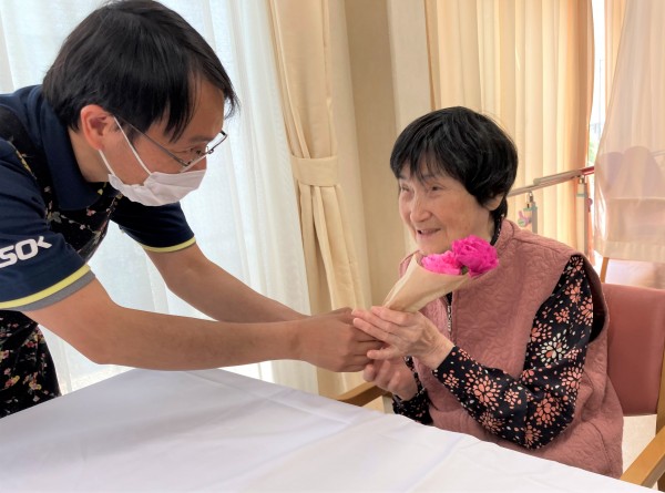 まずは、スタッフからカーネーションのプレゼント♪