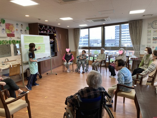 この日のレクでは、腸の活性化を促す体操を行いました。