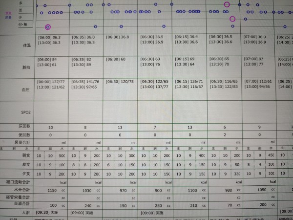 去年まではご利用者様の生活の様子や食事の時間などを手書きで記入をしておりました。