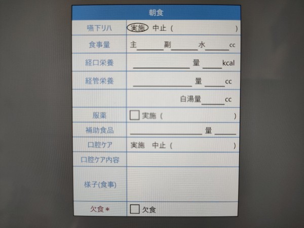 今年に入ってからタブレットが支給され、ブルーオーシャンという介護記録専用のアプリがALSOK介護の事業所に配布されました
