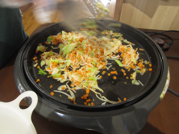 鉄板焼きで炒め、とてもいい香りが漂いました。皆様はとても嬉しそうな表情でした。「まだかなー。早く食べたいな。