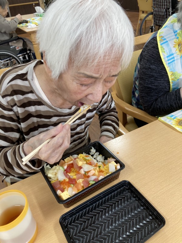 お寿司は食形態を気にしながら、看護師と話し合い、皆さんが食べたいものに出来るだけ沿って注文しています。