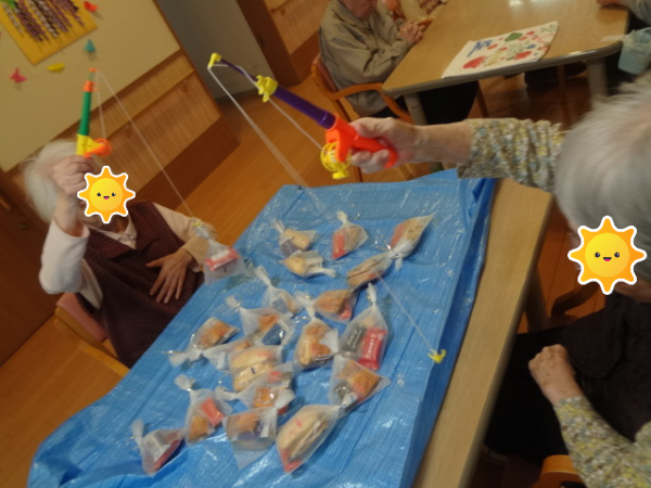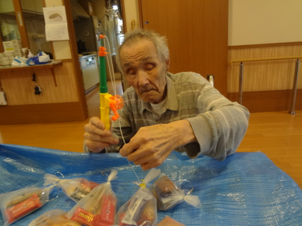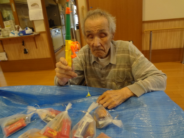 今回は2階で行ったレクリエーション「お菓子釣り」のご様子をお伝えします(^^)/