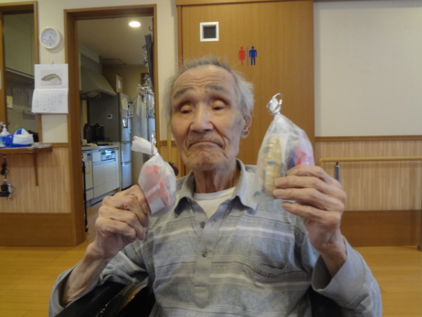 この「お菓子釣り」はいつも盛り上がる皆さん大好きなレクリエーションなのです(^o^)丿