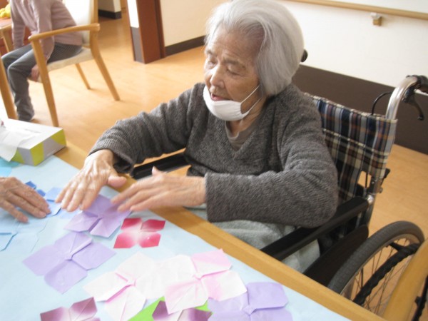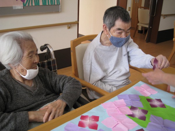 アジサイや葉っぱの折り紙は職員さんが準備してくれました♪