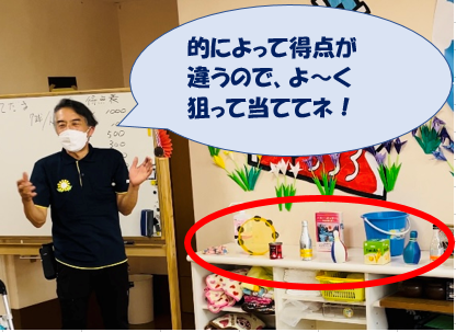 職員が改良を重ねている「お手玉飛ばし装置」で、日ごろのストレスと一緒に思いっきり飛ばして行きましょう(笑)