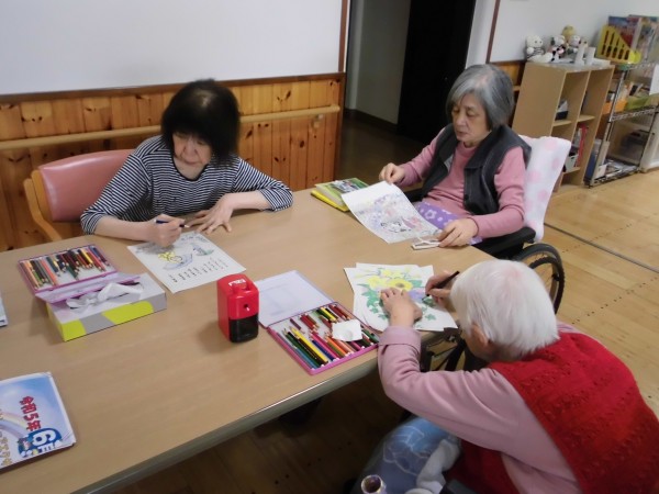 本日は、本館・入居者様の塗り絵の作品をご紹介します!