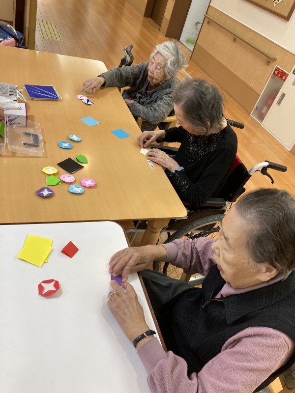 1Fでは折り紙でのあさがお作りをしております!!