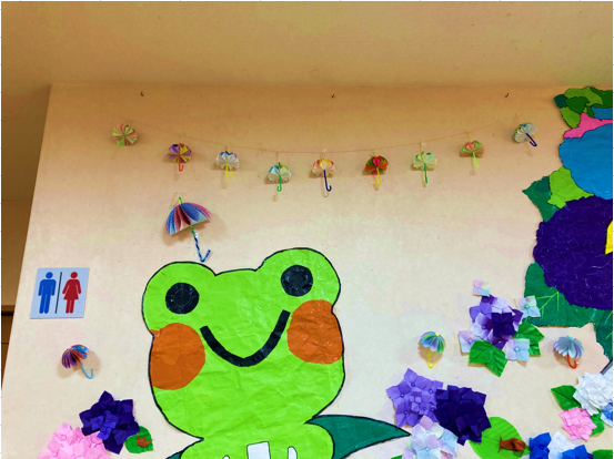 デイサービス遊・東浦和では6月に入り、壁紙を貼り換えました♪