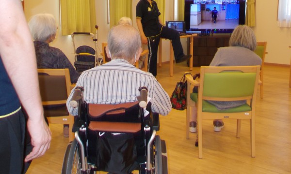 参加した職員が前に立ち、テレビが見えずらいお客様にも内容がしっかりと伝わるように工夫をしてくれました。