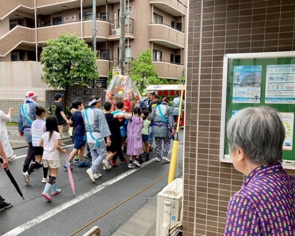 今日、6月11日は地域の「隅田稲荷神社」の例大祭でお神輿が復活して施設の前を通って下さいました!