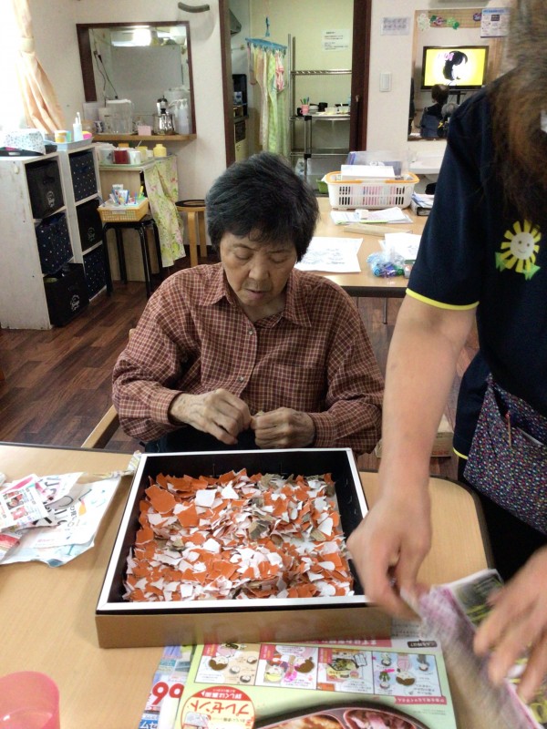 広告をちぎり、塗り絵に色を塗る。一体何ができるのでしょうか?