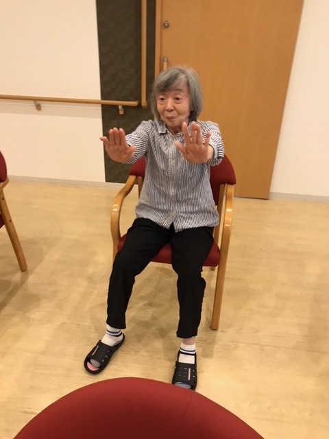 軽快な音楽に合わせて体を動かす運動プログラム。